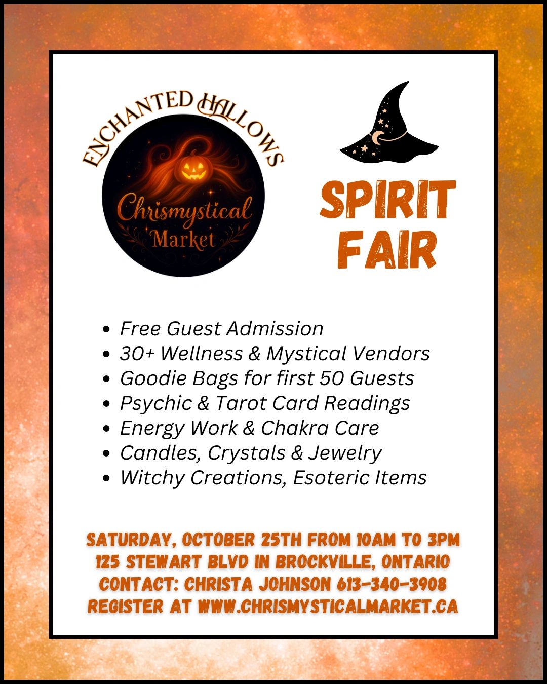 30+ Vendors and service providers from Eastern Ontario offering unique hand made items, crystals, jewelry, paintings, all natural products, essential oils, orgonite pyramids, tarot and oracle readings, psychic medium readings, reiki and more!